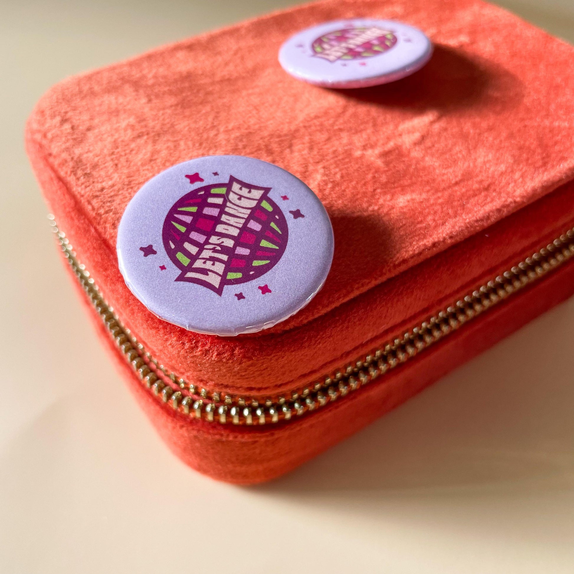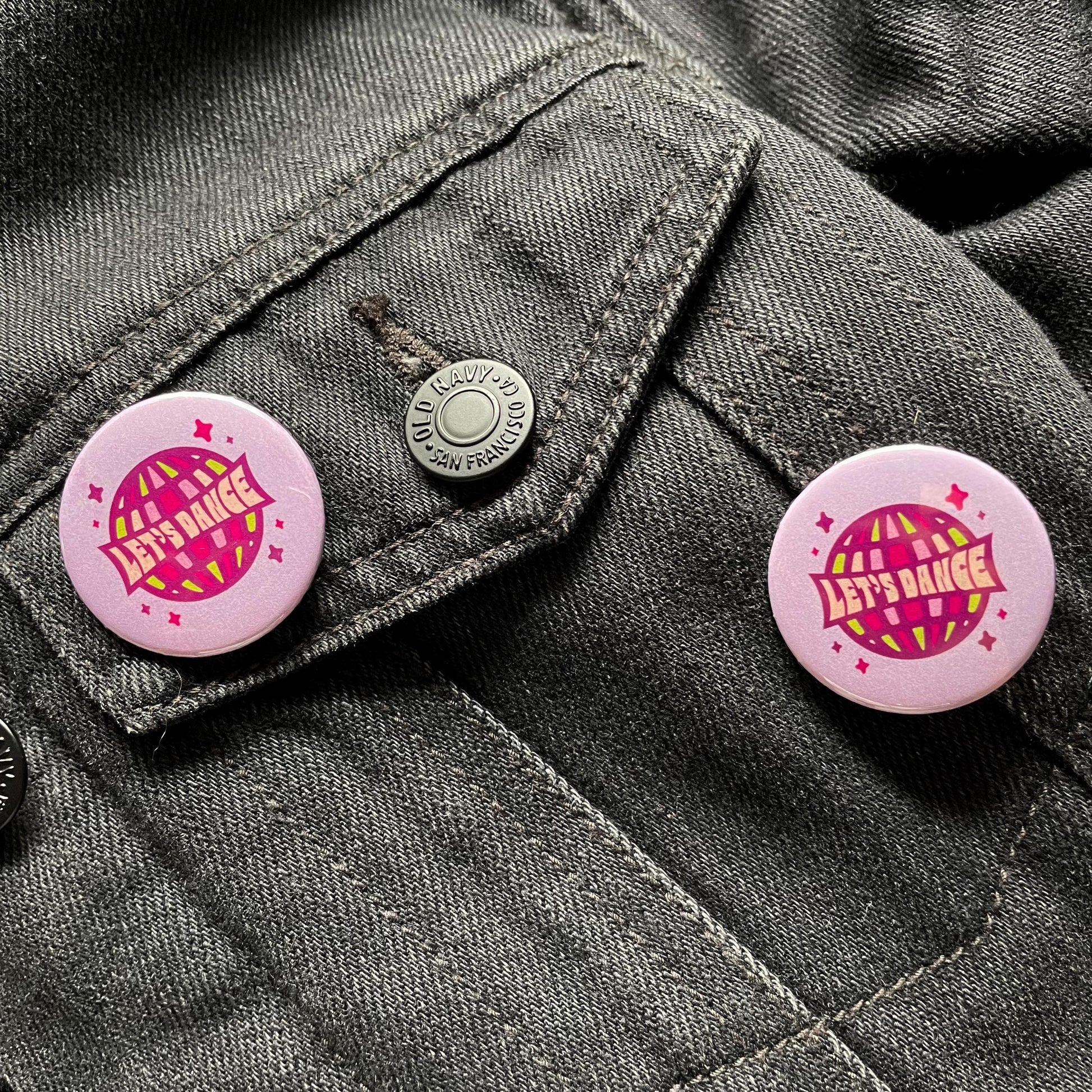 Put on your funkiest dancing shoes and get ready to disco the night away. Attach this pinback button to your jacket, backpack, tote, or any other item with permeable fabric for some extra flair.